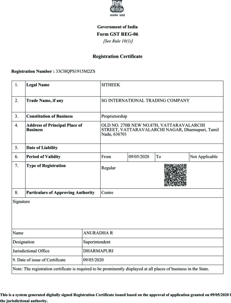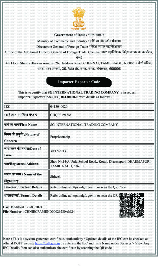 Shop Nr. 14 A, urdu School Street, Kottai, Dharmapuri-636701. Tamilnadu. INDIA.